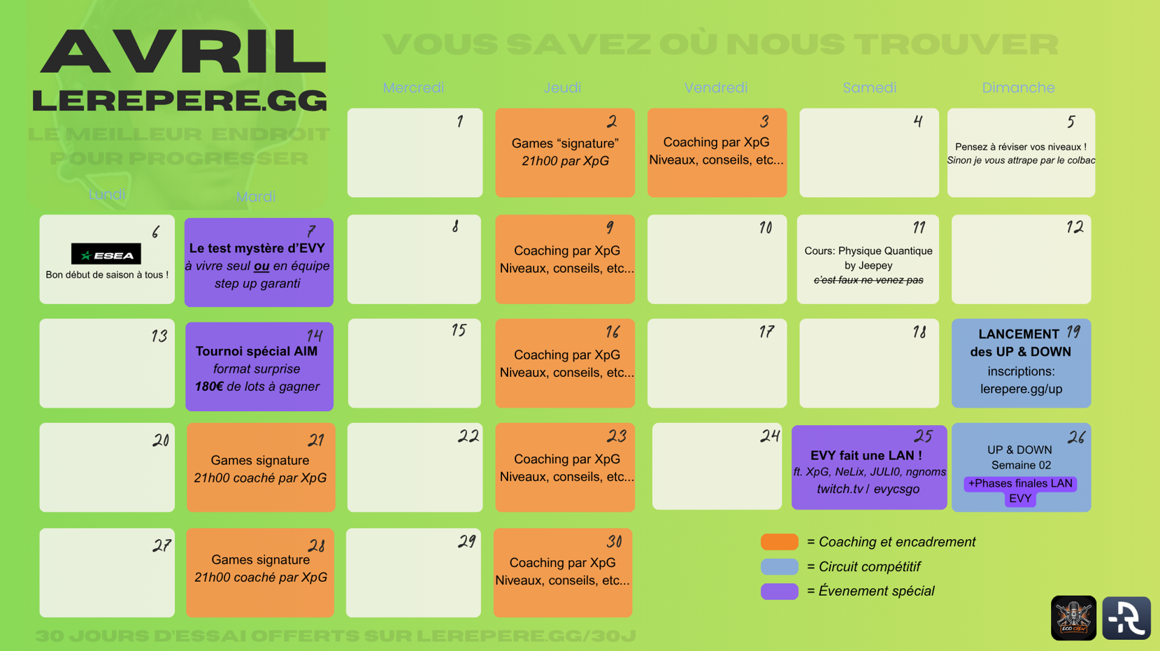 Dans LE REPÈRE tu trouveras un chemin précis de progression, pensé exactement pour augmenter ton impact en game, que tu sois un joueur seul ou au sein d'une équipe, en rejoignant le repère tu vas grandir dans tous les sens du terme